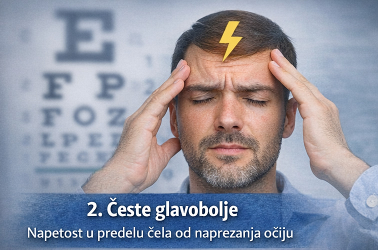 Glavobolje su veoma čest znak neadekvatne korekcije vida. Kada oči pokušavaju da fokusiraju sliku uprkos pogrešnoj dioptriji, dolazi do naprezanja očnih mišića.