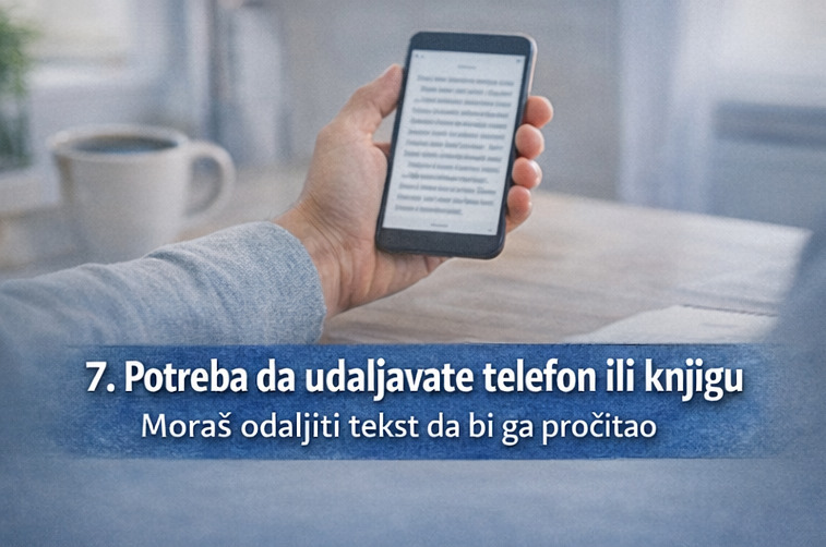 Ovo je čest znak kod osoba posle 40. godine i može ukazivati na presbiopiju – prirodnu promenu vida za blizinu.